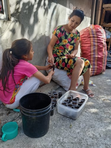 We do have some community expenses. We are buying some truckloads of goat manure, bogasa (sugar cane stalks) and other materials to make lots of compost. This will be shared amongst the gardens. In addition, Tumianuma is short on water. There is a water canal about 1,000 meters away and we have permission to use that. We will invest in tanks and a two inch hose.
