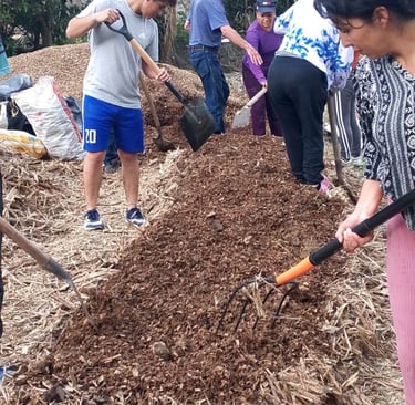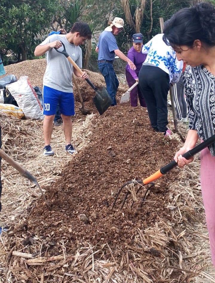 Creando abono con la gente del proyecto.de huertos