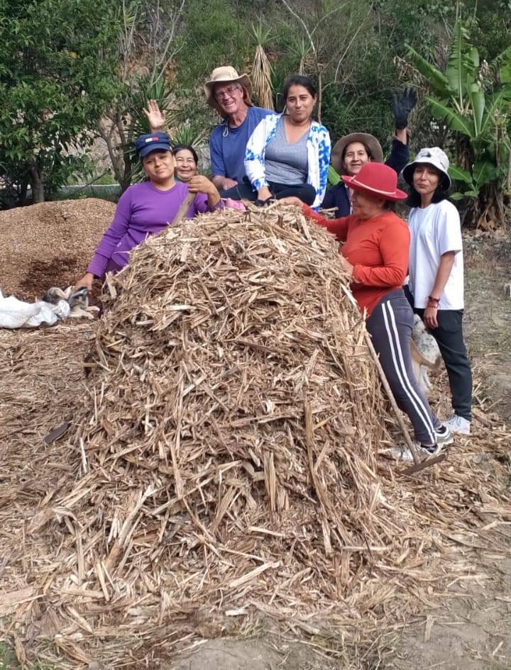 Me sorprende la fertilidad del suelo aquí. Todo crece bien. Pero sé que, si no cuidamos activamente la fertilidad y la materia orgánica, los cultivos fracasarán en un par de años. Eso es precisamente lo que les estoy enseñando. Las tres prácticas fundamentales son: compostaje, cubrir el suelo (ya sea con bagazo, que es muy barato, o con cáscaras de maní) y el uso de “Biol”, un abono líquido que la gente local usa mucho. Todos estos insumos son locales y fácilmente accesibles.